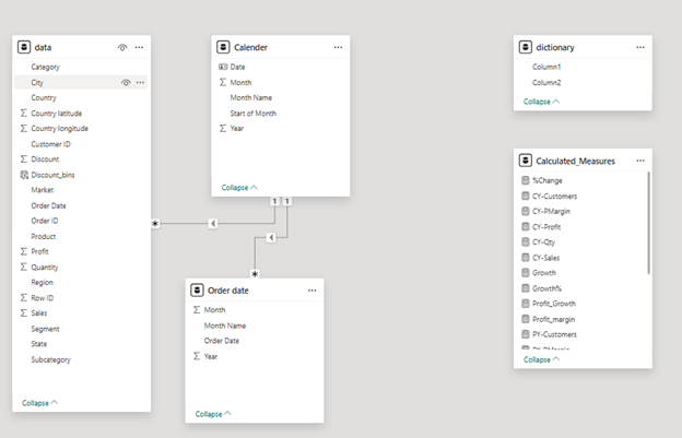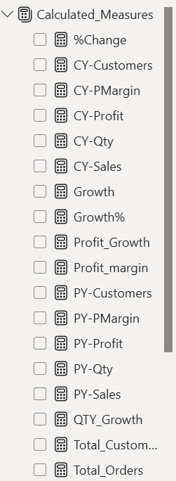 The calculated columns created are Total Sales, total profit, total cost, total customers , total orders to give info about the Major points and achievements. The comparison of this year sales vs last year sales, this year profit vs last year profit, this year orders vs last year orders. Subtract this year with last year number will give us growth of Revenue, profit, cost, customers, orders in Percentage%.
